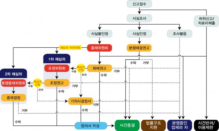 ③조정(제1차 재심의)는 조정위원회가, 분쟁중재(제2차 재심의)는 분쟁중재위원회가 담당한다.